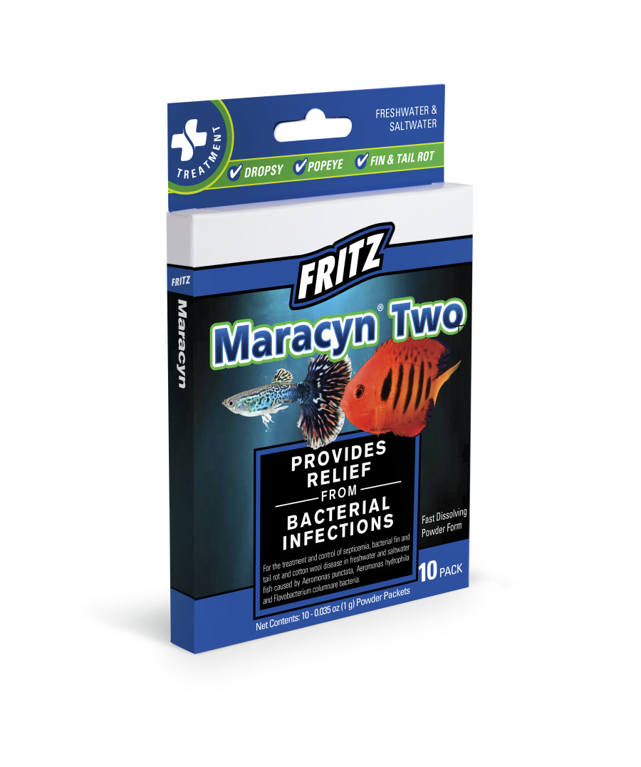 Maracyn Two powder is a broad-spectrum antibiotic developed for use in aquariums which has been shown to be effective against a number of pathogenic bacteria associated with ornamental fish disease. Due to its unique properties, it is absorbed by the fish through the skin. During the prescribed treatment, the concentration of the active ingredient in the fish fluids rises to a therapeutic level and is available to fight systemic infections susceptible to its action. Maracyn Two is primarily effective against gram-negative pathogenic organisms. Internal diseases are more difficult to detect than external ones as early detection is almost impossible. It is also potentially effective against some gram-positive and fungal infections, making it our most broad-spectrum treatment, and a great first choice of medication when the cause of disease is unknown.